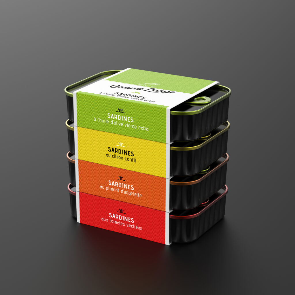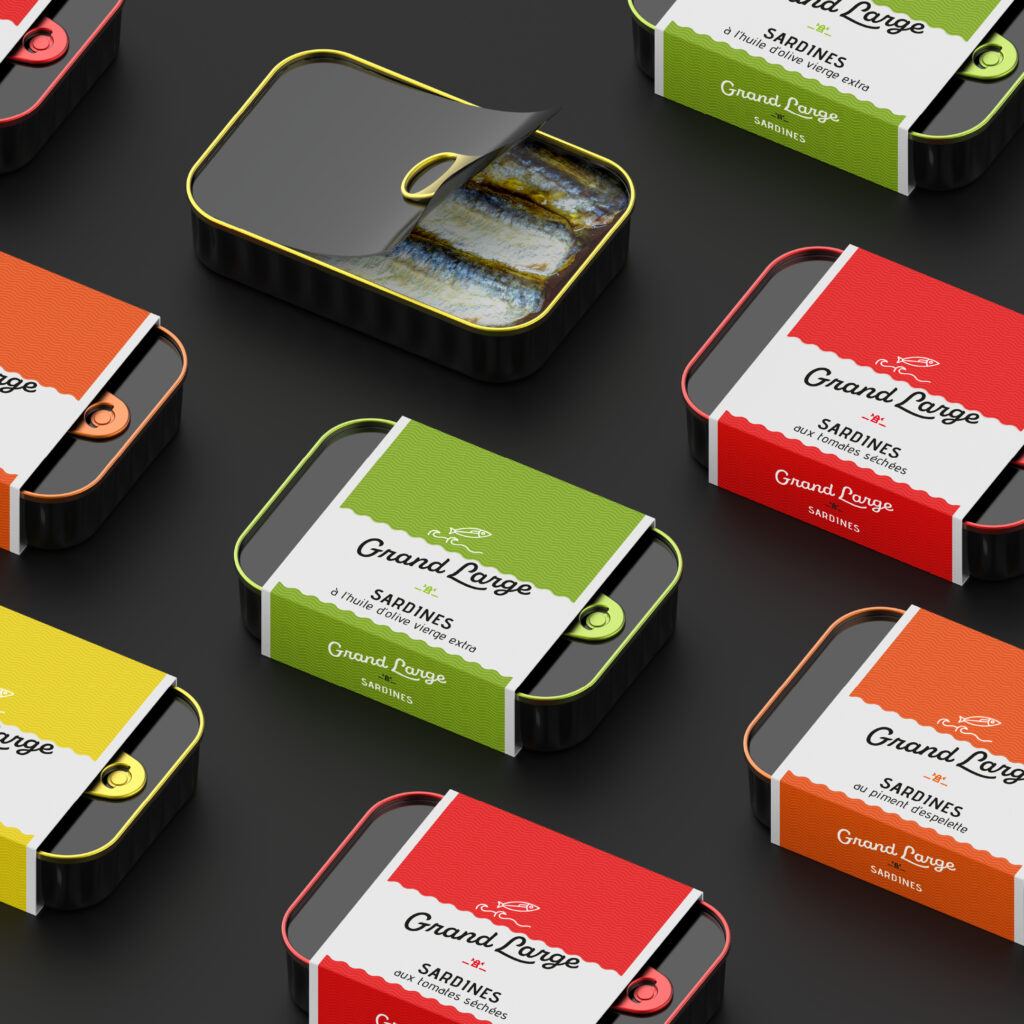 POURQUOI GRAND LARGE ? PARCE QU’IL ÉVOQUE L’HORIZON ET L’EXCELLENCE. AVEC SON DESIGN SOBRE ET RAFFINÉ — UNE BOÎTE NOIRE ÉLÉGANTE SUBLIMÉE D’UN FOURREAU COLORÉ — CETTE GAMME DE SARDINES PREMIUM ALLIE AUTHENTICITÉ ET SOPHISTICATION. CHAQUE DÉTAIL, DU GAUFRAGE DÉLICAT AU VERNIS SUBTIL, TRANSFORME LA BOÎTE EN ÉCRIN MARIN. GRAND LARGE, LA RENCONTRE DU SAVOIR-FAIRE ARTISANAL ET DE L’ESTHÉTIQUE DU LUXE.
